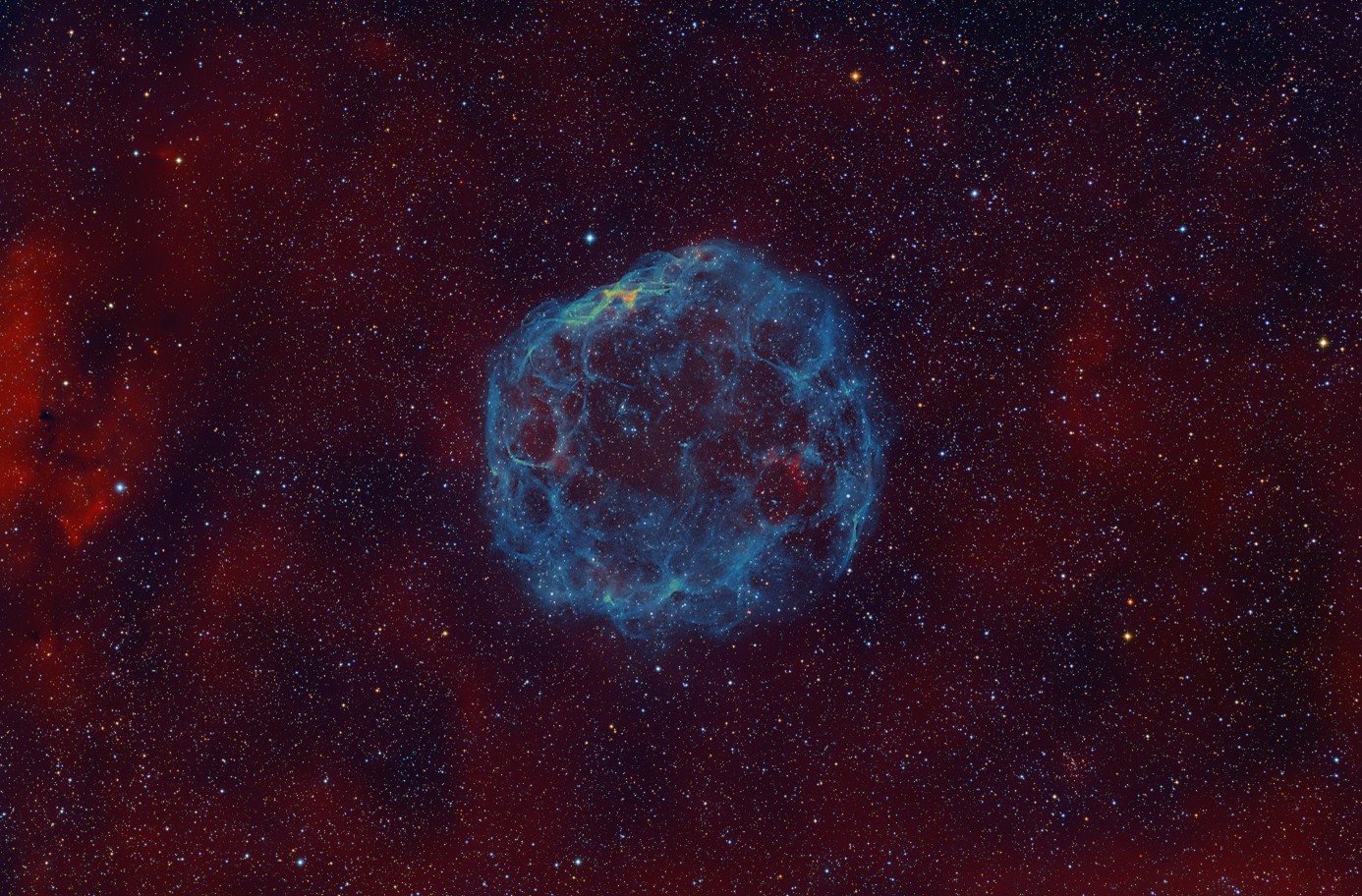 Die CCD-Guide Software wurde bis auf Bugfixes gegenüber dem bewährten Release-Stand CCD-Guide 2025 nicht geändert. Neben den Bugfixes in der Software wurden auch Fehler in der Objektdatenbank behoben und Erweiterungen bei exotischen Objekten implementiert, wie folgende Aufnahme des Objekts SNR G179.0+02.6 von unserem neuen Bildautor Andreas Bringmann zeigt: